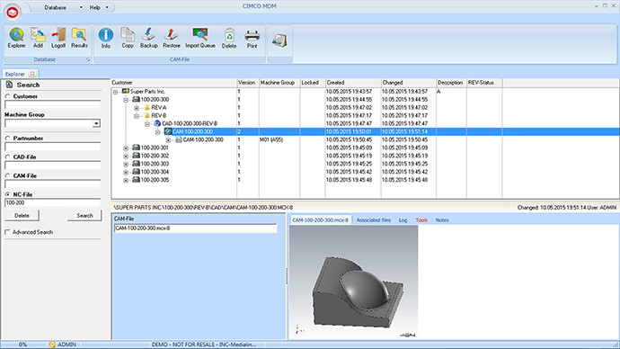 CIMCO MDM (Manufacturing Data Management) ensures complete control over production-related documentation and technical data.