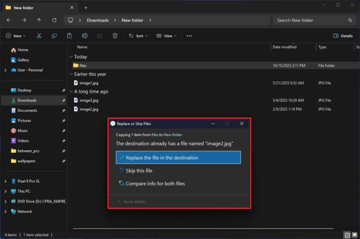 Microsoft cũng đang triển khai trải nghiệm chế độ nền tối đồng bộ và nhất quán hơn cho File Explorer. Là một phần của Bản cập nhật bảo mật tháng 12/2025, bạn sẽ thấy giao diện nền tối được áp dụng rộng rãi hơn trong các hộp thoại như sao chép, di chuyển và xóa tệp.